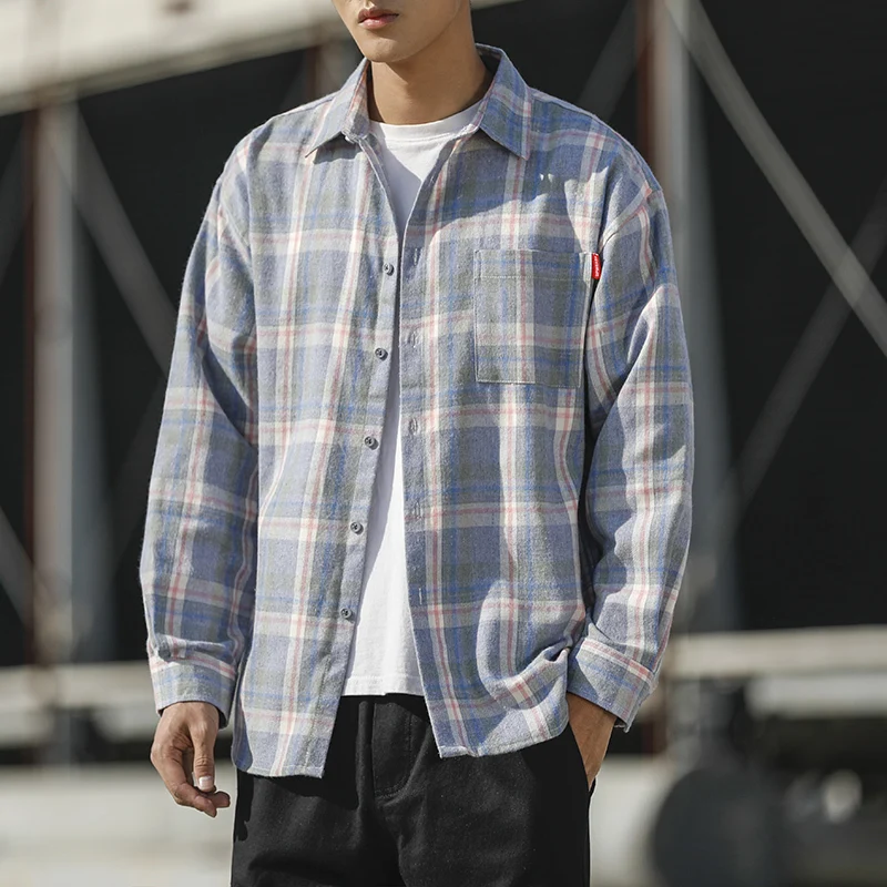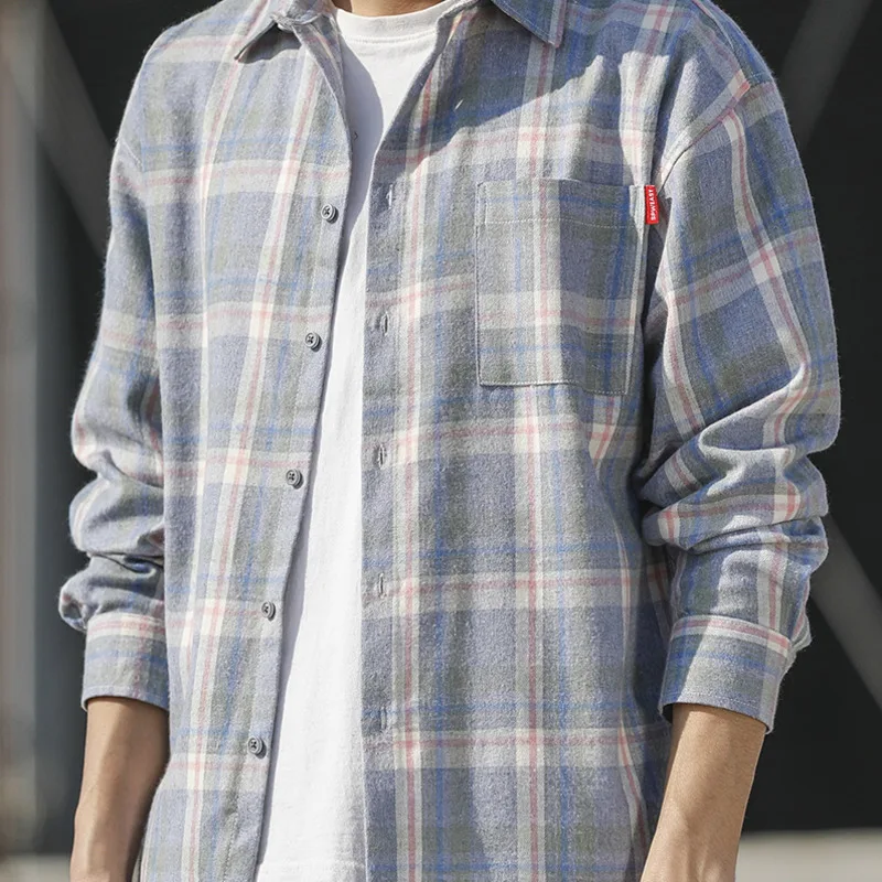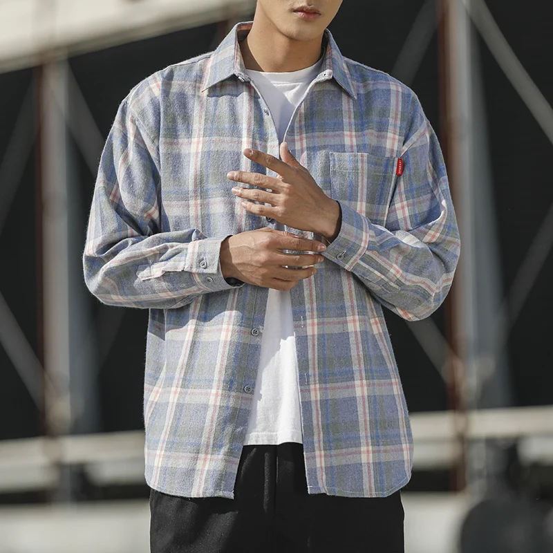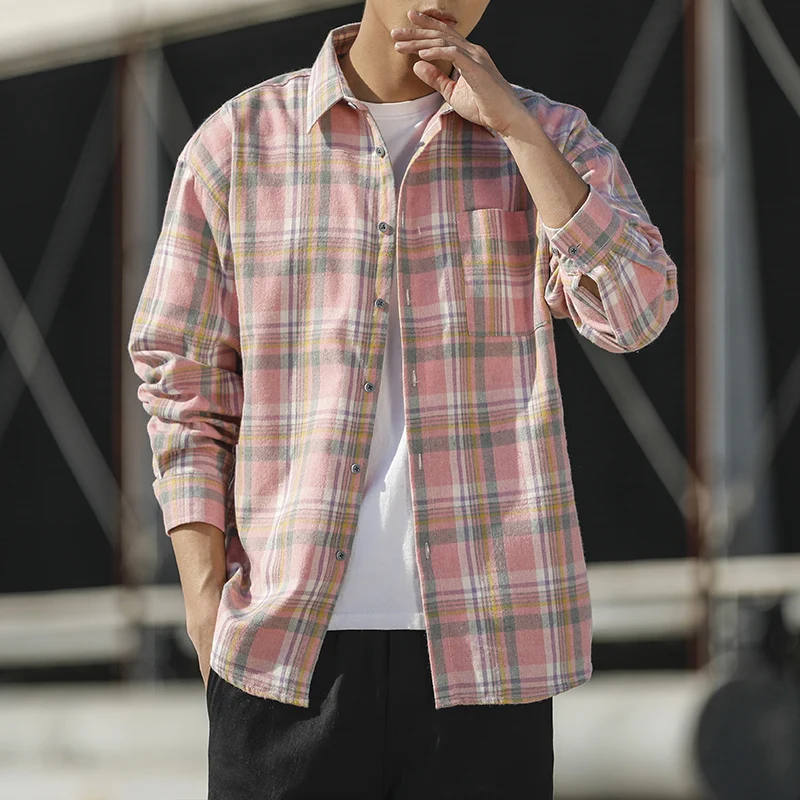 .Pictures of Spring Plaid Shirt Men's Fashion Retro Casual Shirt Men Streetwear Wild Loose Long-sleeved Shirts Mens Large Size M-5XL