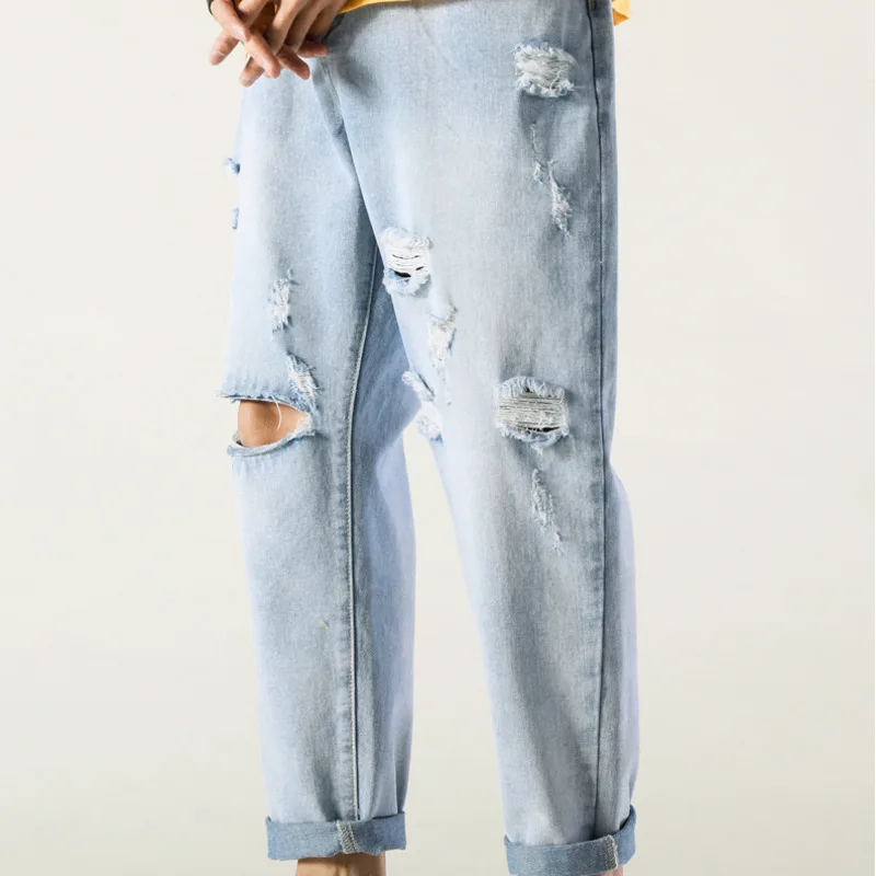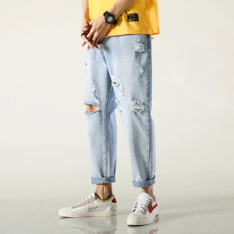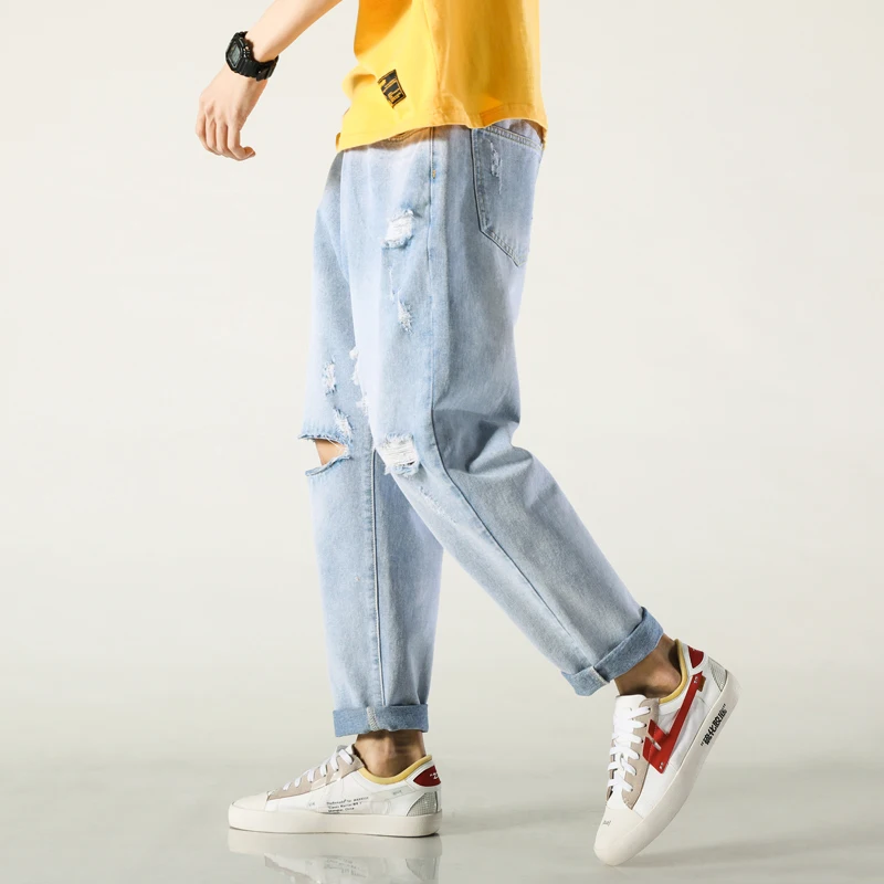 Best Summer Jeans Men's Fashion Washed Solid Color Casual Ripped Jean Pants Men Streetwear Wild Loose Hip Hop Denim Trousers Mens Free Shipping