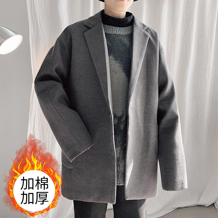 Good Chance of Winter Short Plus Cotton Woolen Coat Men's Fashion Solid Color Casual Woolen Jacket Men Loose British Style Woolen Coat Mens