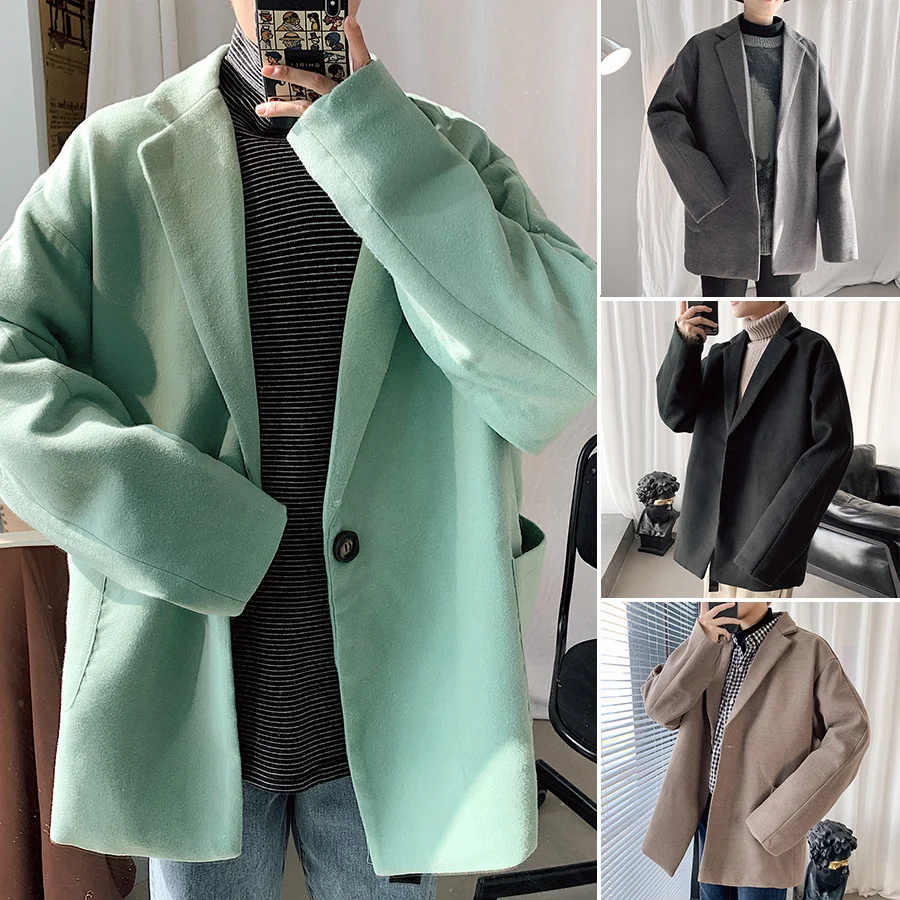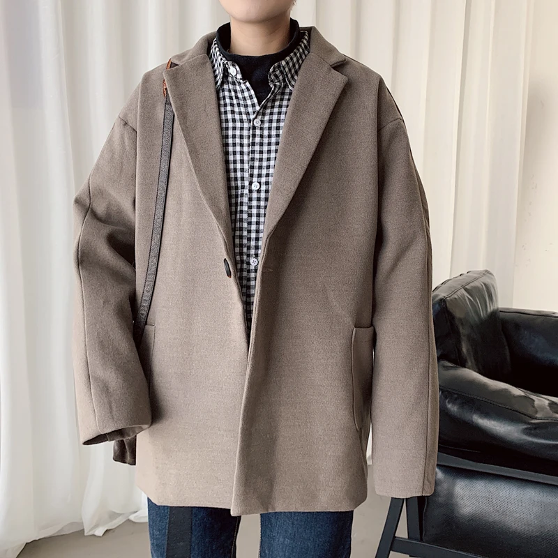 Chance Description for Winter Short Plus Cotton Woolen Coat Men's Fashion Solid Color Casual Woolen Jacket Men Loose British Style Woolen Coat Mens