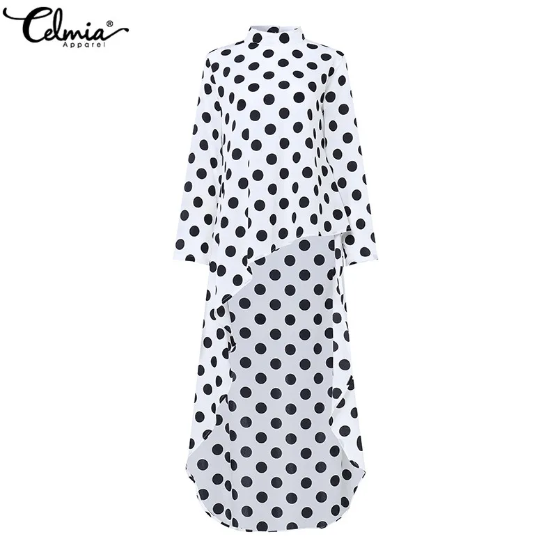 Chance Description of Women Tops and Blouses 2019 Celmia Female Autumn Long Sleeve Asymmetrical Casual Shirts Loose Dot Print Blusas Mujer Plus Size