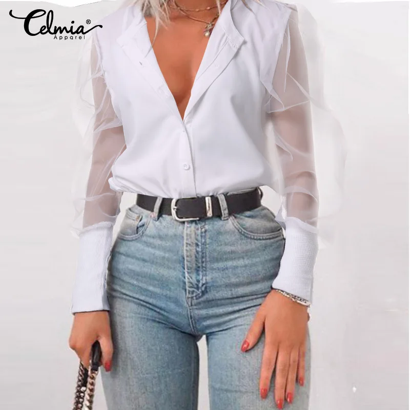 Related Product for [KEYWORD] and 2020 New Women Sexy See-through Mesh Blouse Celmia Casual O Neck Tops Long Sleeve Blouses Sheer Shirts Elegant Party Work BlusasFashion Spring Summer Women Casual Mesh Pearl Long Sleeve Blouse Tops Black V Neck Sexy Slim Outfit Patchwork Blouse Shirt