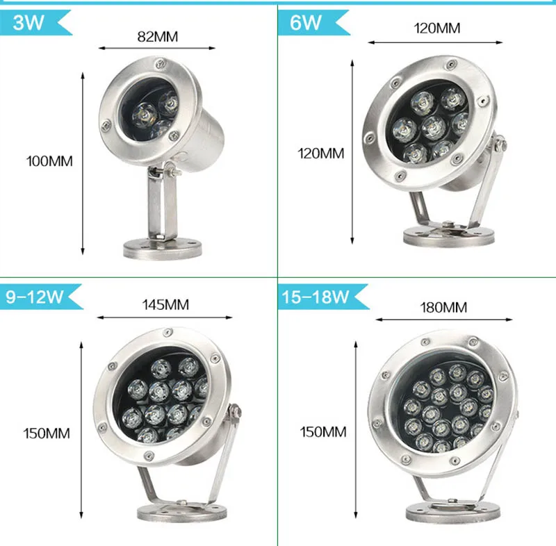 Price Description for 6W-24W Pond Landscape Lamp 24V Colorful Fountain Swimming Pool LED Underwater Light Waterproof Lamp