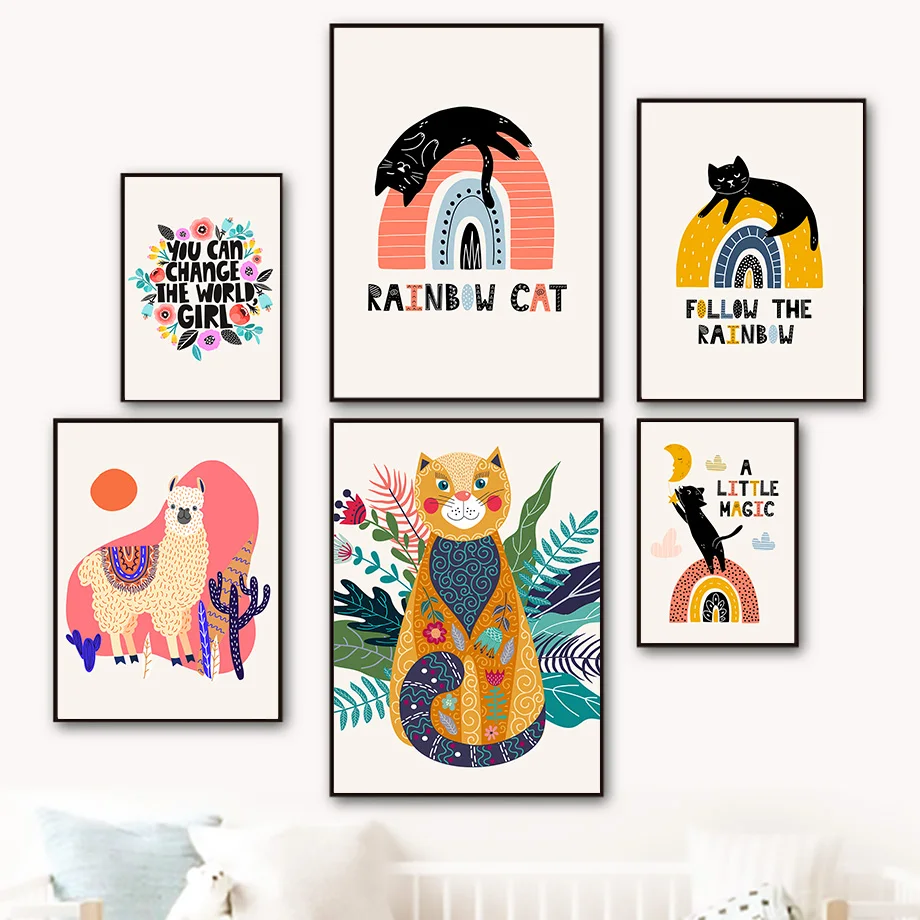 .Images for Alpaca Letter Cat Cartoon Style Llama Wall Art Canvas Painting Nordic Posters And Prints Wall Pictures Baby Kids Room Home Decor