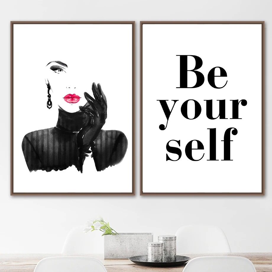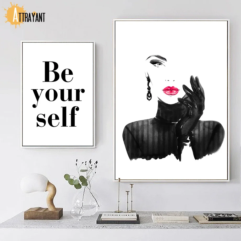 Chance Description for Black White Fashion Girl Nordic Posters And Prints Wall Art Canvas Painting Wall Pictures For Living Room Bedroom Home Decor