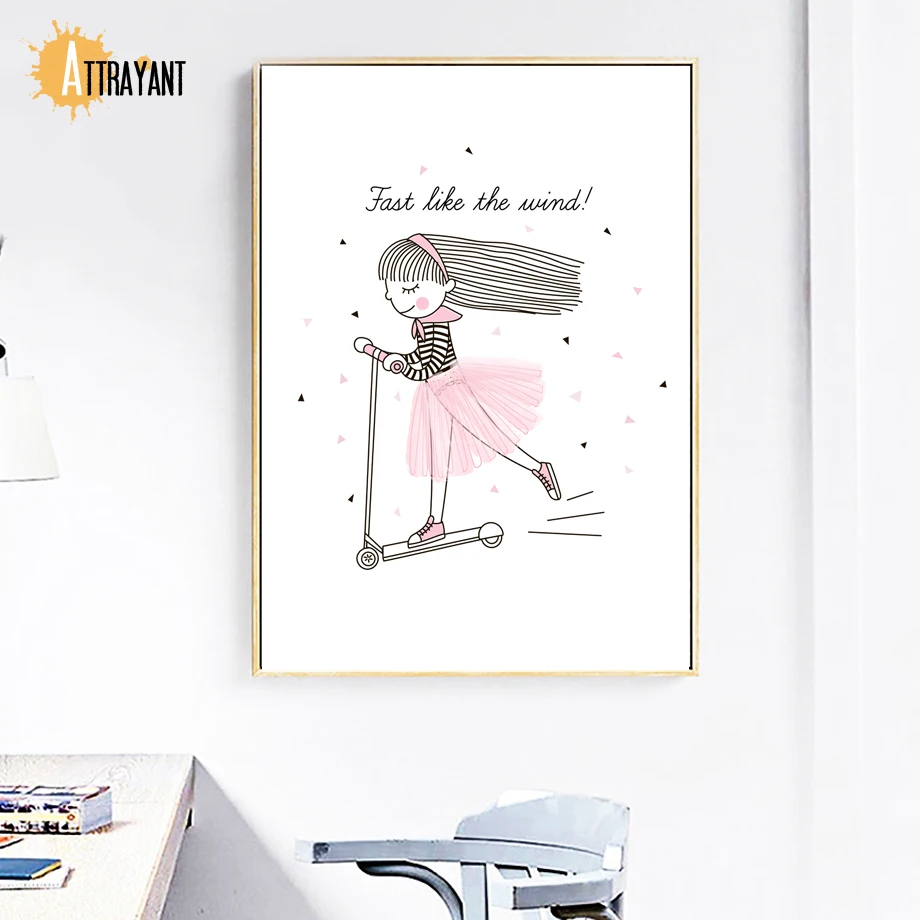 .Gallery of Cartoon Diamond Scooter Girl Wall Art Canvas Painting Nordic Posters And Prints Wall Pictures Baby Girl Room Bedroom Home Decor