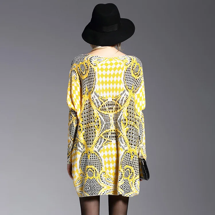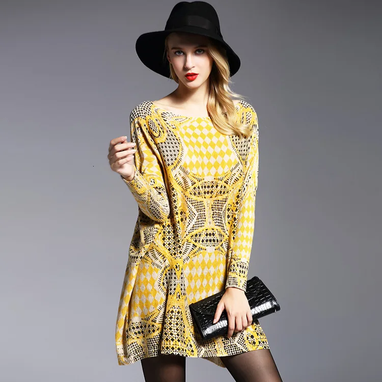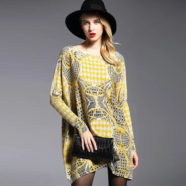 .Gallery for Casual Printed Knitting Pullovers Autumn Winter Women Sweaters Slash Neck Long Sleeve Ladies Loose Jumpers 2020 Roupa Feminina