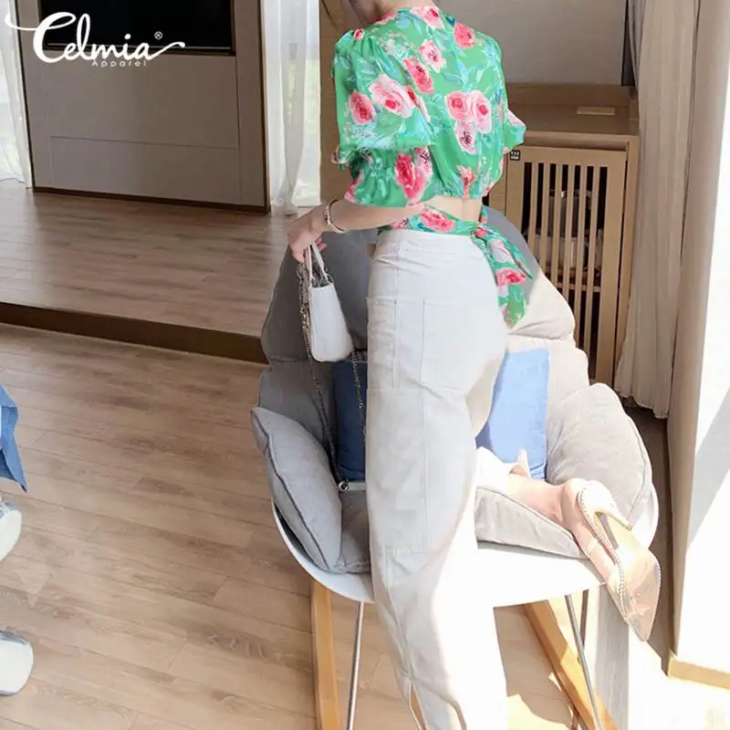 Addition Information of Celmia Women Floral Print Vintage Blouses Short Sleeve Summer Chic Tops Back Bow Tie Beach Shirts Sexy V neck Tunic Blusas S-5XL