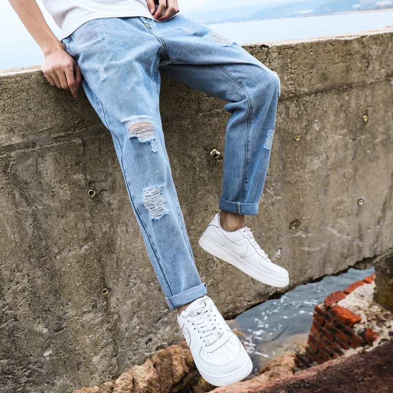 .Pictures for HENCHIRY 2020 Fashion Streetwear Top Men's Stretch Loose fit Jeans Men's Denim Pants Brand New Style Trousers HENCHIRY Menswears