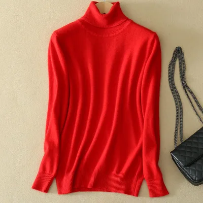 Limited Price for High Quality Cotton Cashmere Sweaters Pullover Women's Turtleneck Sweater Women Korean Solid Color Women's Knitted Basic Sweater