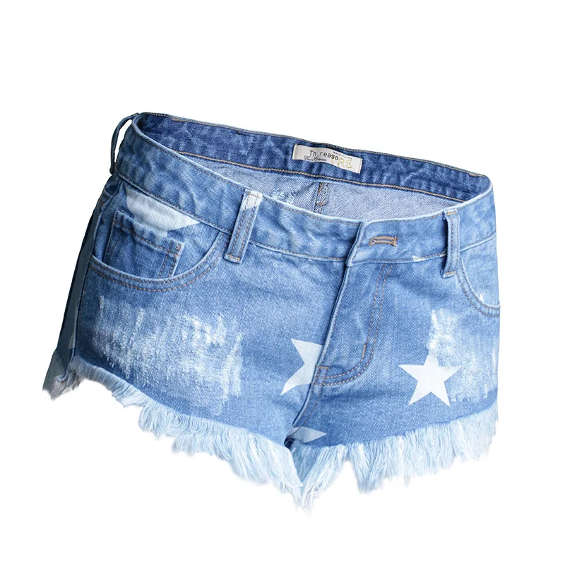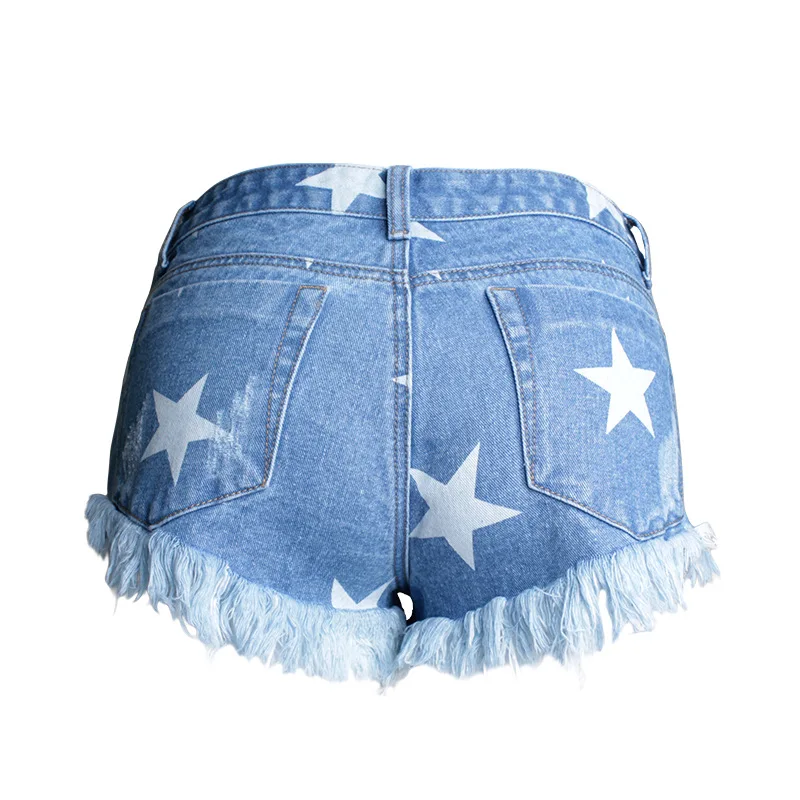 Price Description for Holiday Wind European and American Women's Ultra-short Hot Pants Star Print Suture Side Waist Bullet-free Denim Shorts