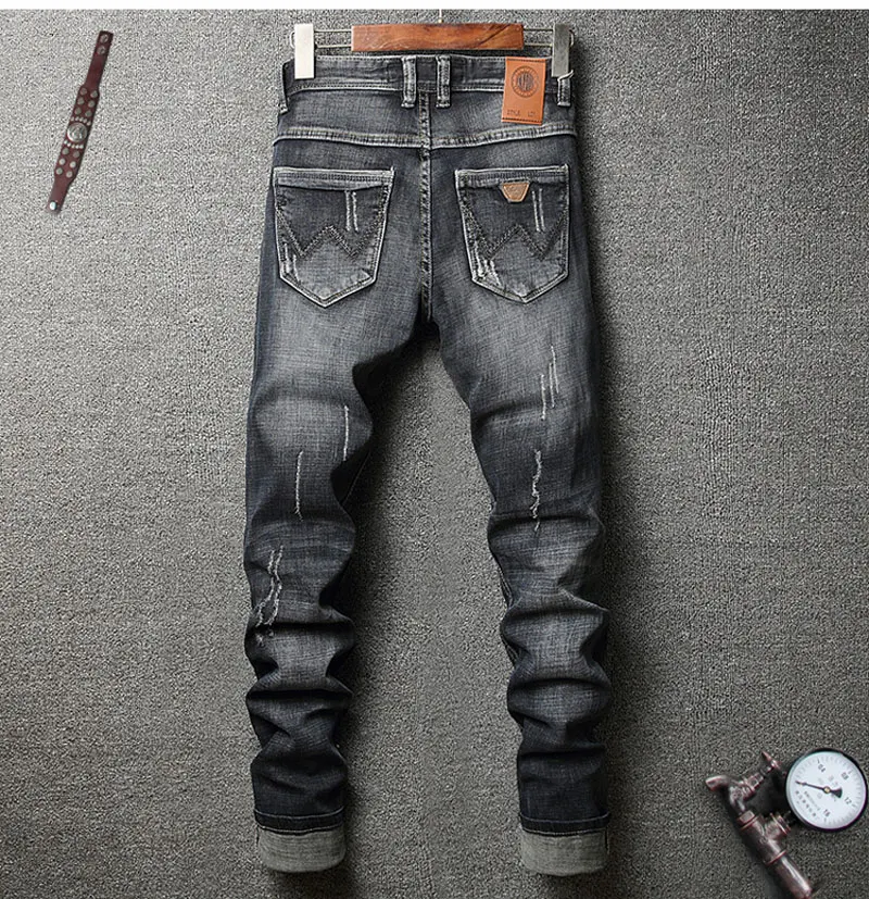 .Images for Italian Style New Men Jeans Black Color High Quality Casual Pants Slim Fit Brand Streetwear Stretch Biker Jeans Men
