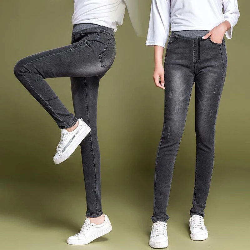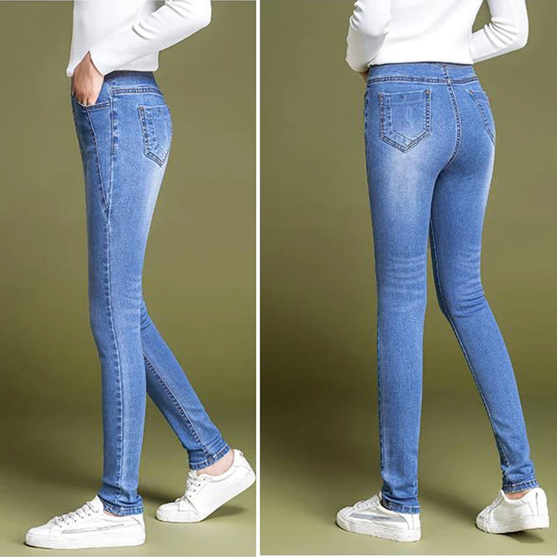 .Pictures for Korean Skinny Jeans Woman High Waist Elastic Pencil Pants Ladies Denim Trousers Slim fit Jeggings Patchwork Plus Size Clothing