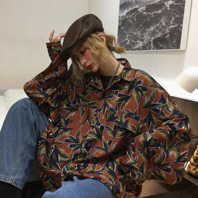 .Gallery for Men's Shirt 2019 Autumn and Winter New Retro Shirt Harbor Wind Couple Print Loose Long Sleeve Shirt Youth Trend Men's Wear