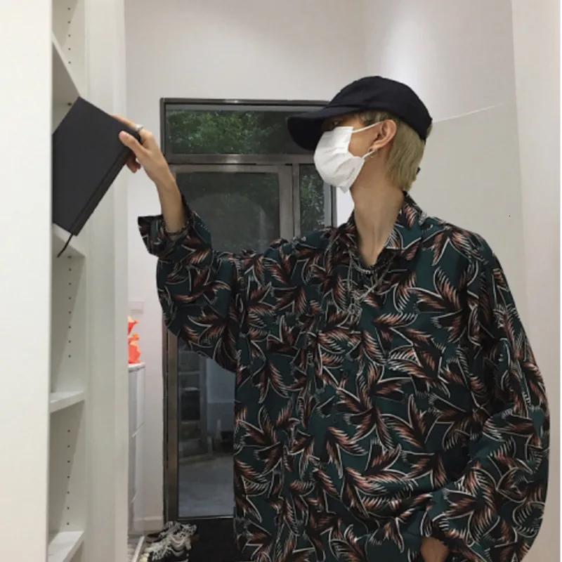 Addition Information of Men's Shirt 2019 Autumn and Winter New Retro Shirt Harbor Wind Couple Print Loose Long Sleeve Shirt Youth Trend Men's Wear