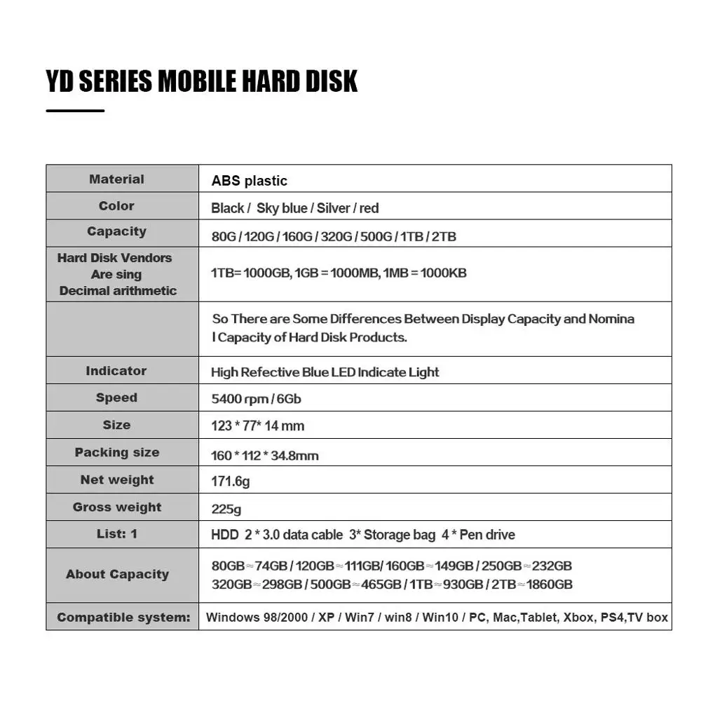 Addition Information of SOMNAMBULIST USB 3.0 External Hard Drive 2TB 1TB 500GB HDD 2.5" Hard Disk hd externo disco duro externo Hard Drive