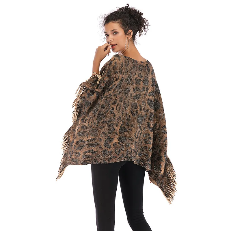 Addition Information of Tiger Head Tassels Cloak Shawl Pullover One Word Neck Knitting Loose Winter Coat Sweater Women Manteau Femme Hiver Streetwear