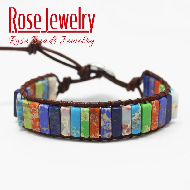 .Gallery for Chakra Bracelet Jewelry Tube Beads Natural Stone Handmade Multi Color Leather Wrap Bracelet Creative Gifts Couples Bracelets