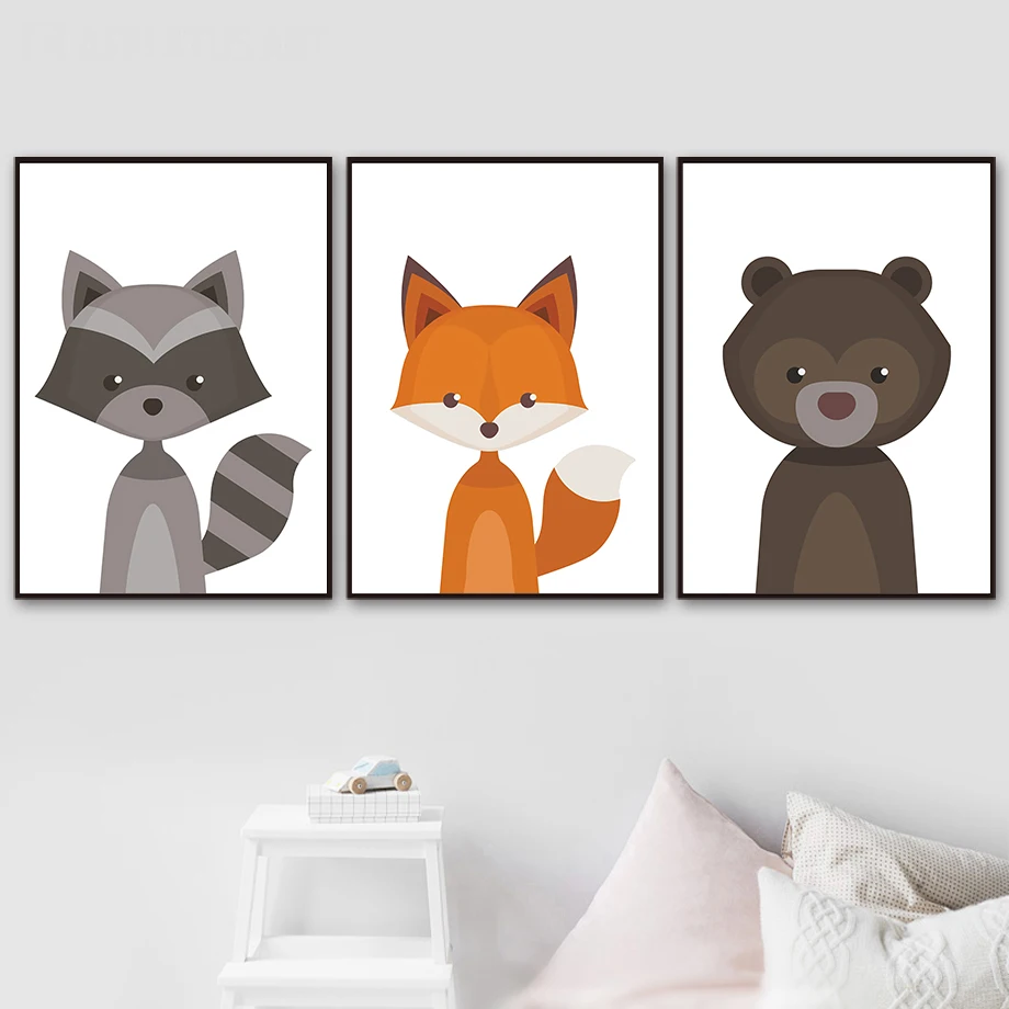 .Gallery for Cute Raccoon Fox Bear Rabbit Deer Animals Nordic Posters And Prints Wall Art Canvas Painting Wall Pictures Baby Kids Room Decor