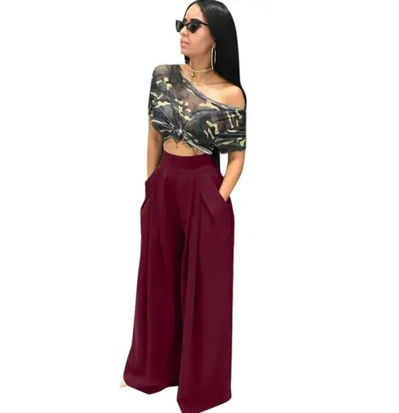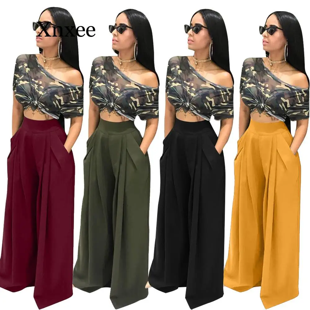 Best High Waist Wide Leg Pants Women Fashion Autumn Plus Size Trousers Streetwear Casual Loose Pocket Party Palazzo Pants pockets Free Shipping