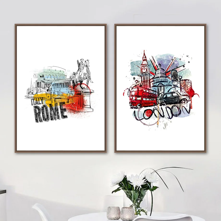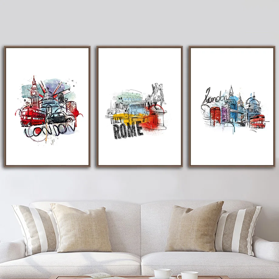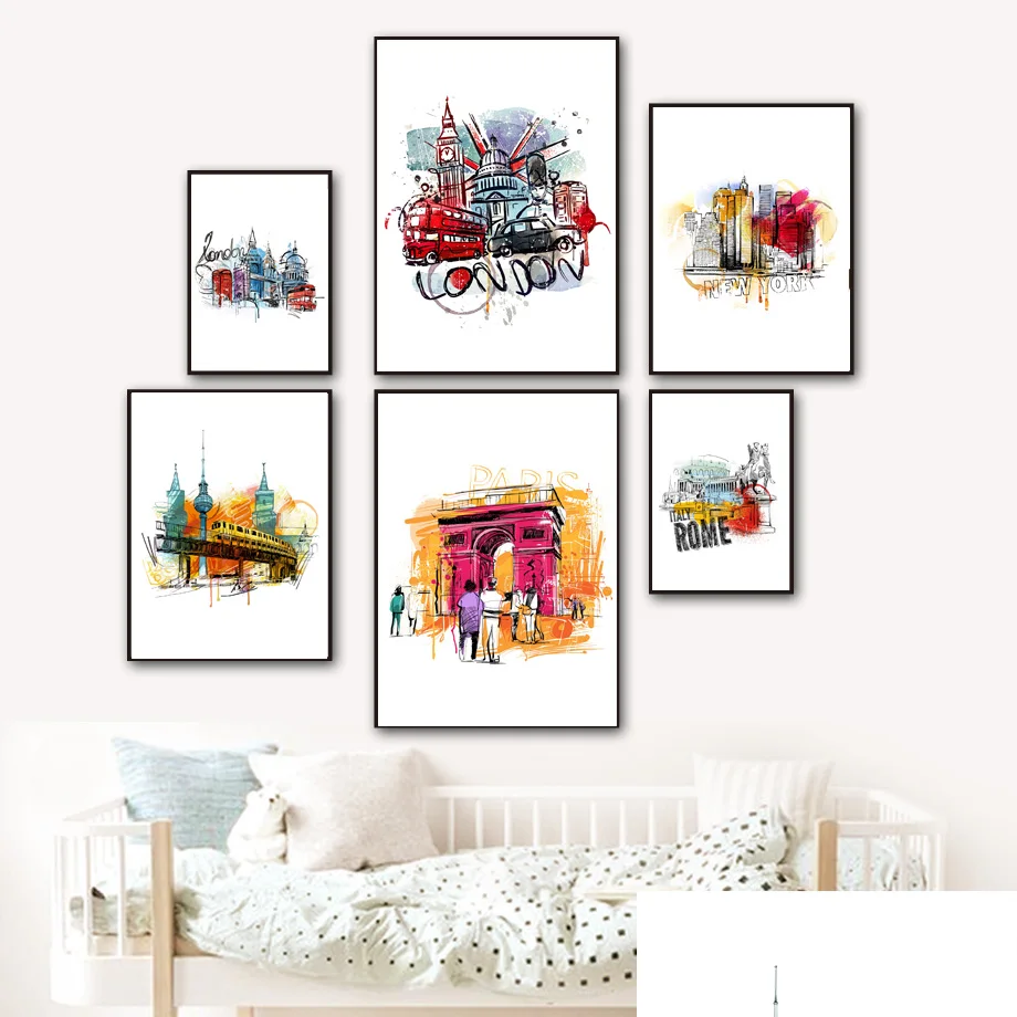 .Pictures for London Rome Paris New York Color City Wall Art Canvas Painting Nordic Poster And Prints Wall Pictures For Living Room Decor