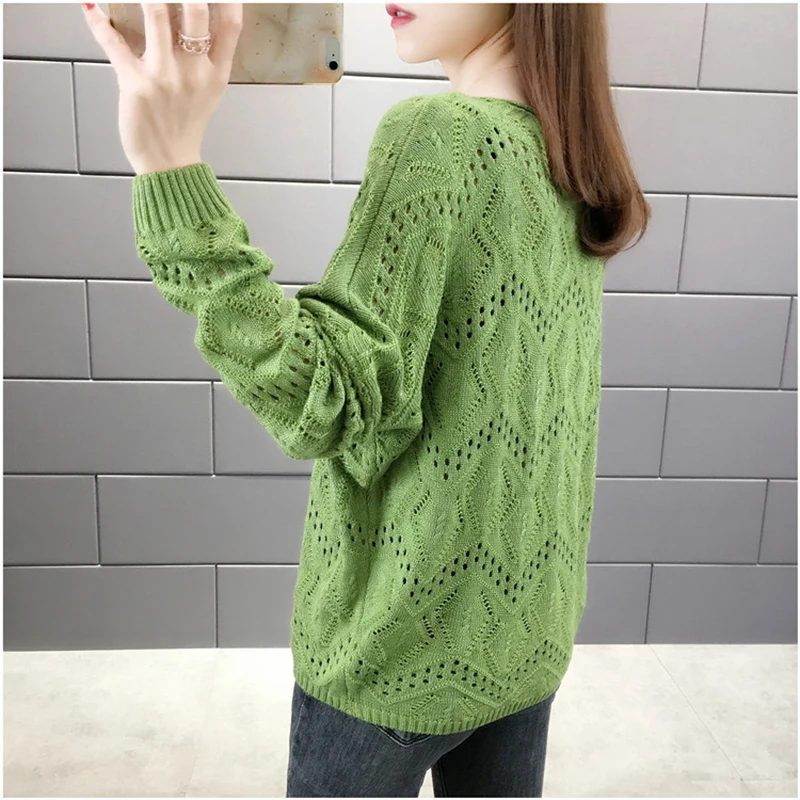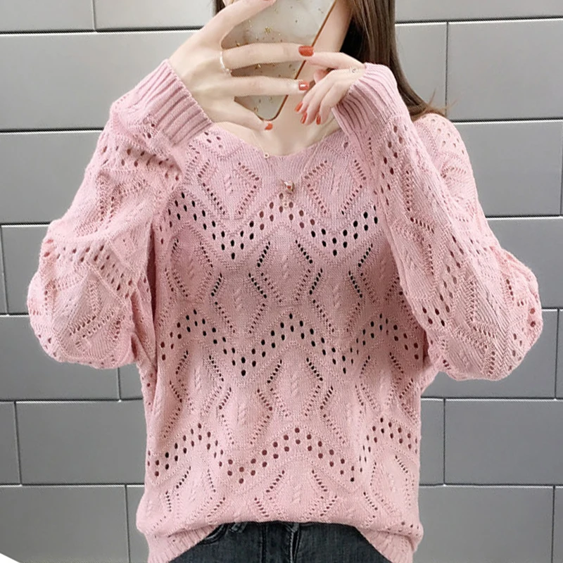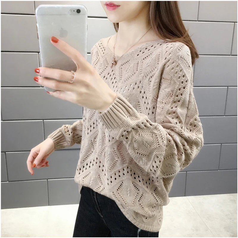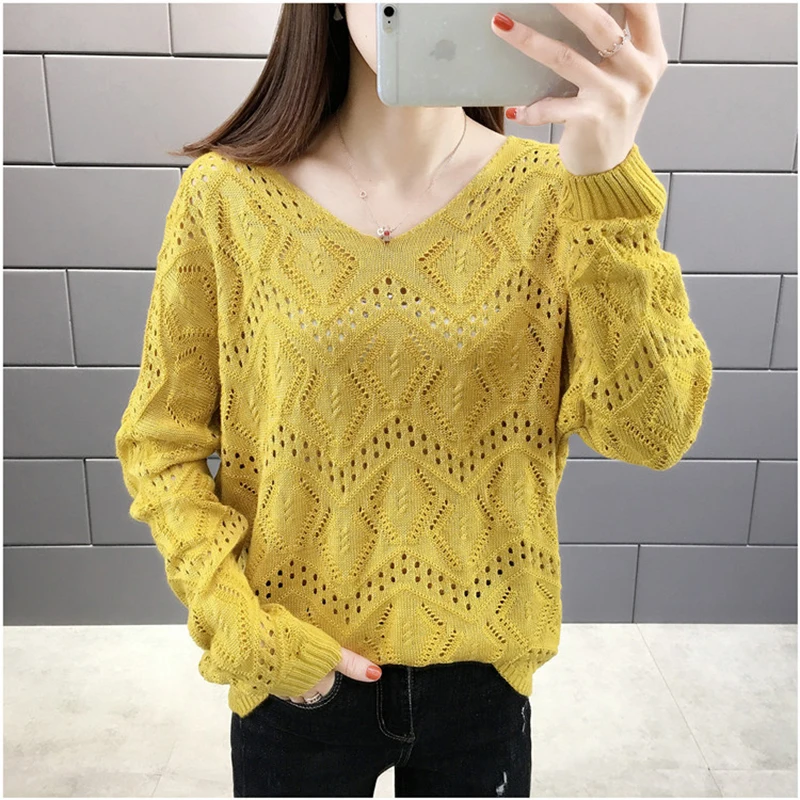 .Pictures for shintimes 2020 New Blouse Women Hollow Out Shirt Casual Loose Ladies Tops Long Sleeve Pullover Thin Knitted Sweater Womens Tops