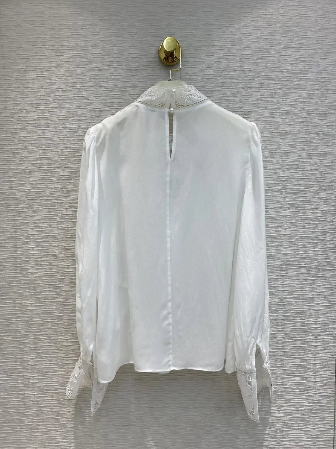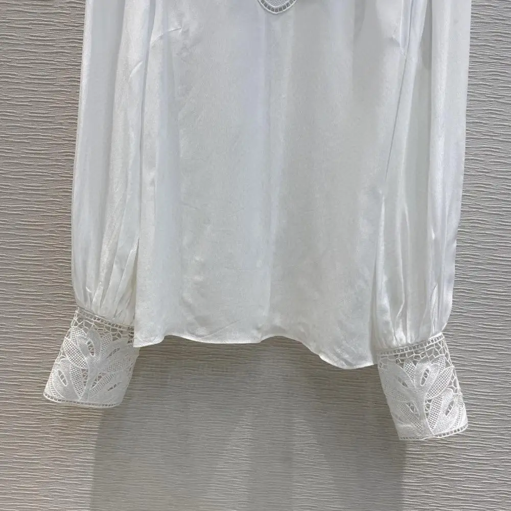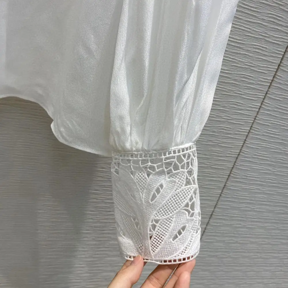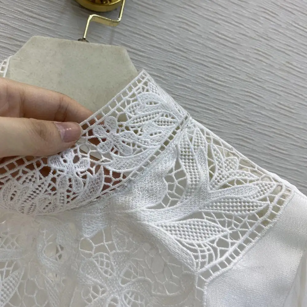 .Images for 2020 Spring Summer High-quality Woman Shirt Nail Bead Button Blouses O-Neck Hollow Out Sleeve Hollow Out Famous Lady Shirt