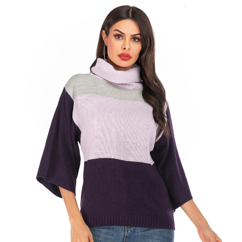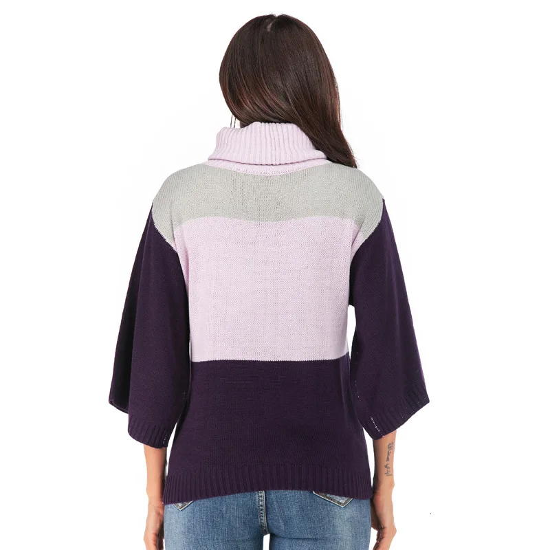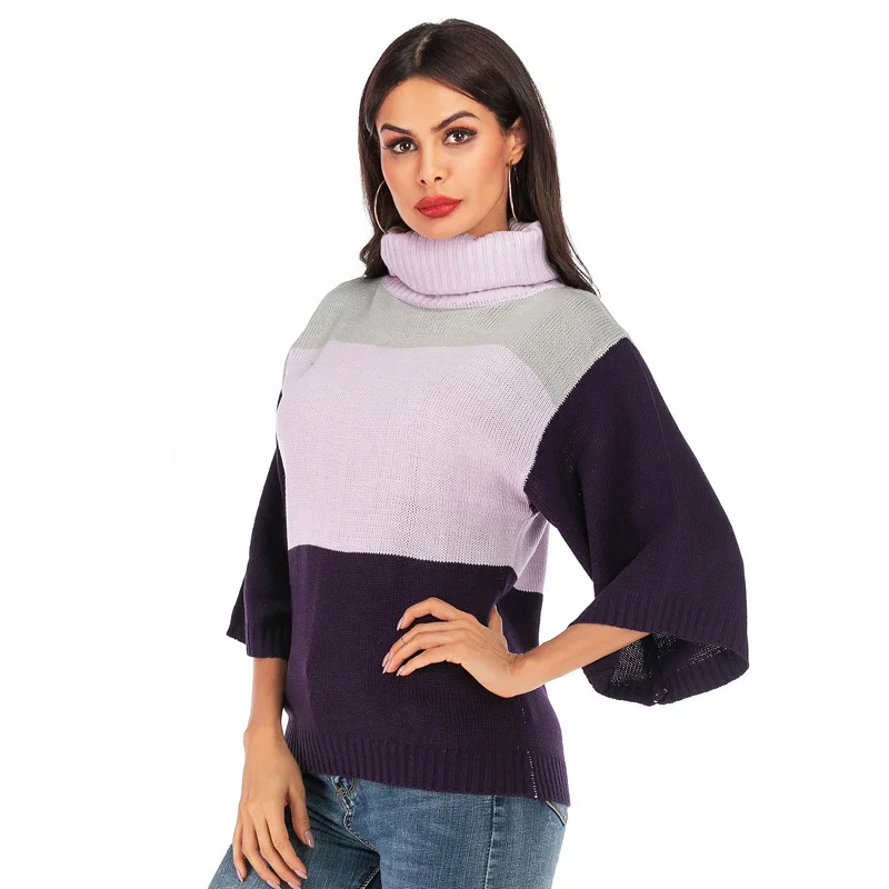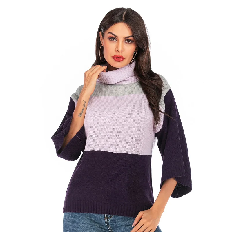Price Description for Autumn Winter Women Knitted Turtleneck Sweater Ladies Loose Pullovers Casual Half Sleeve Striped Sweater Jumper 2020 Sweterki