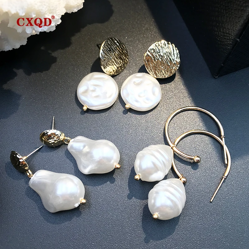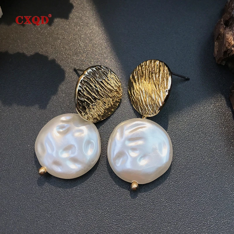 Limited Price of CXQD Elegant Metal Gold Oval Circle Square Egg-shaped Geometric Irregular Imitation Pearl Drop Earrings For Women Girls Gifts