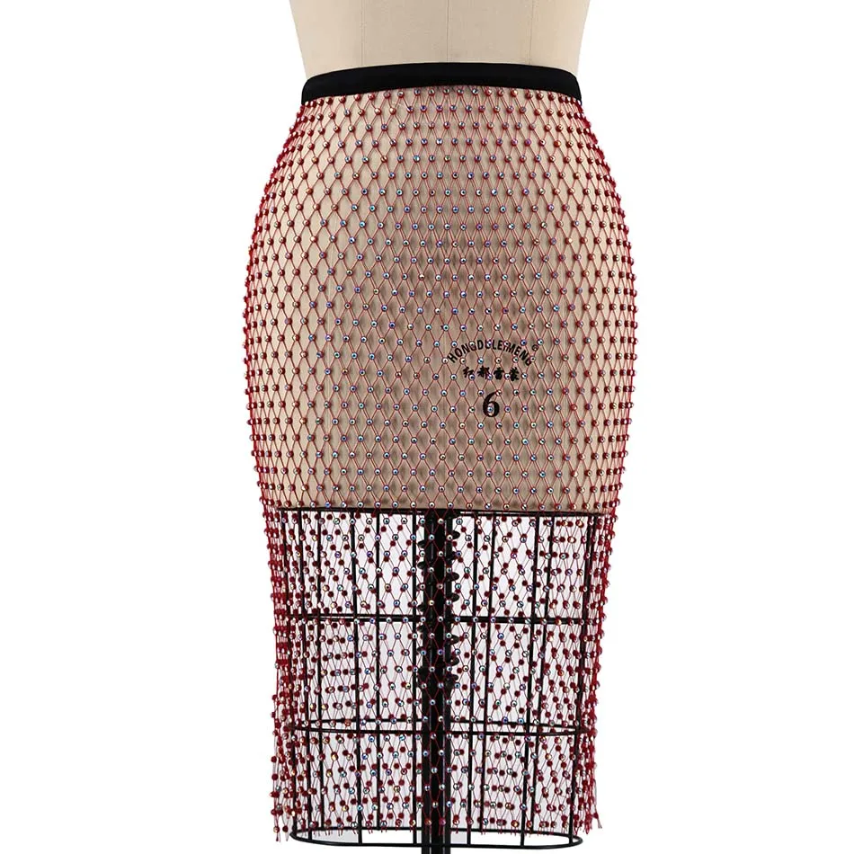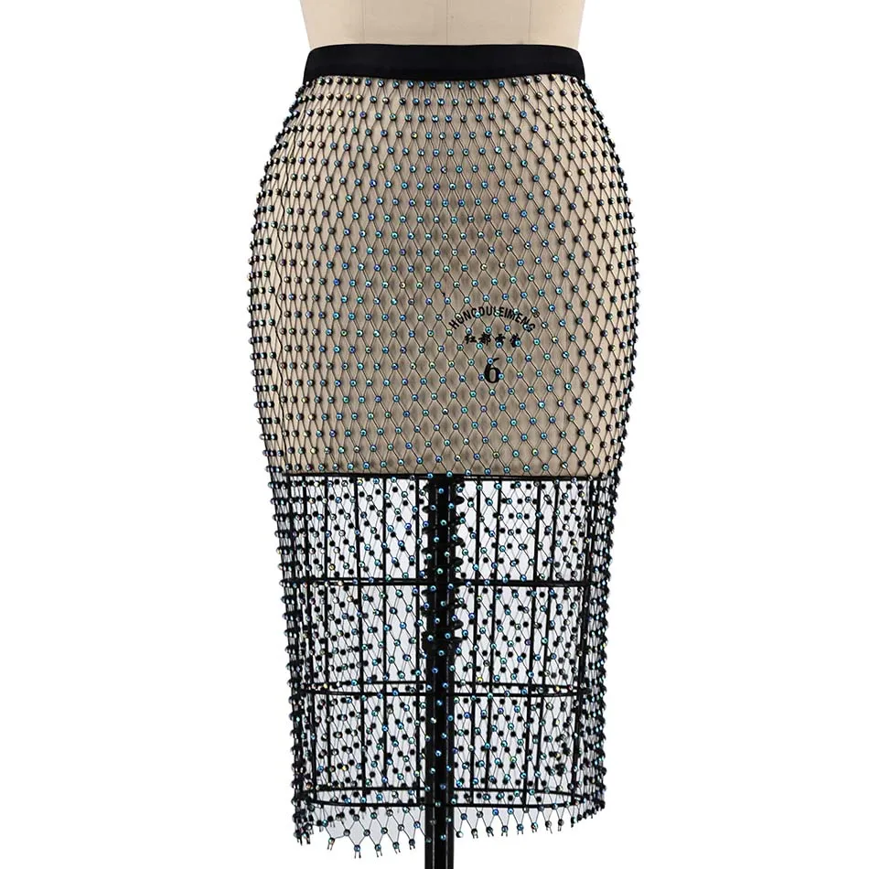 Cheap Price for Grid Flash Drill Waist Skirt Sexy Nightclub Hollow Out Shinning Women's Clothing See Through Solid Elegant Femme Robe Skirts