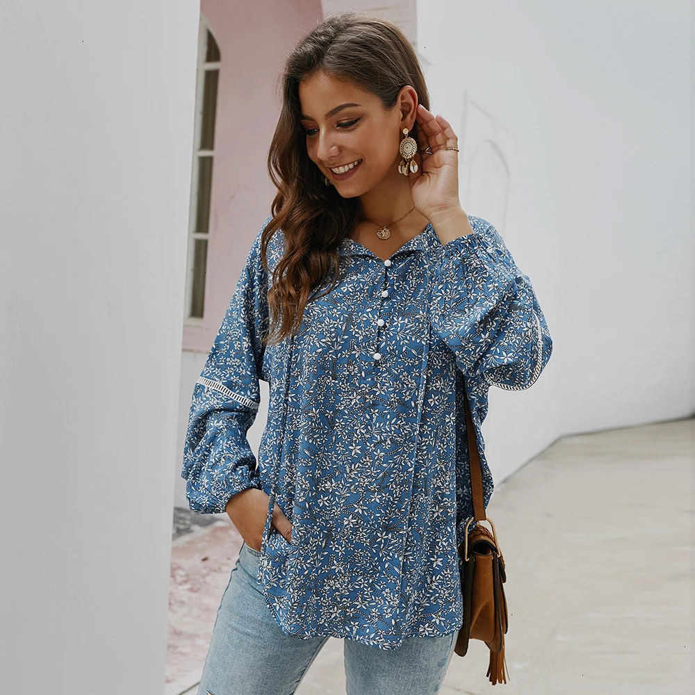 Offer Description of New Spring Summer V Neck Lantern Sleeve Casual Boho Ladies Shirt Fashion Floral Print Womens Tops And Blouses Blusas Mujer 2020