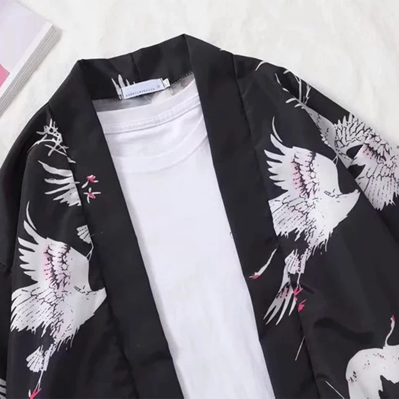 Chance Description for Samurai Crane Japanese Style Kimono Men Women Cardigan Three Quarter Sleeve Traditional Japanese Clothing Asian Clothes