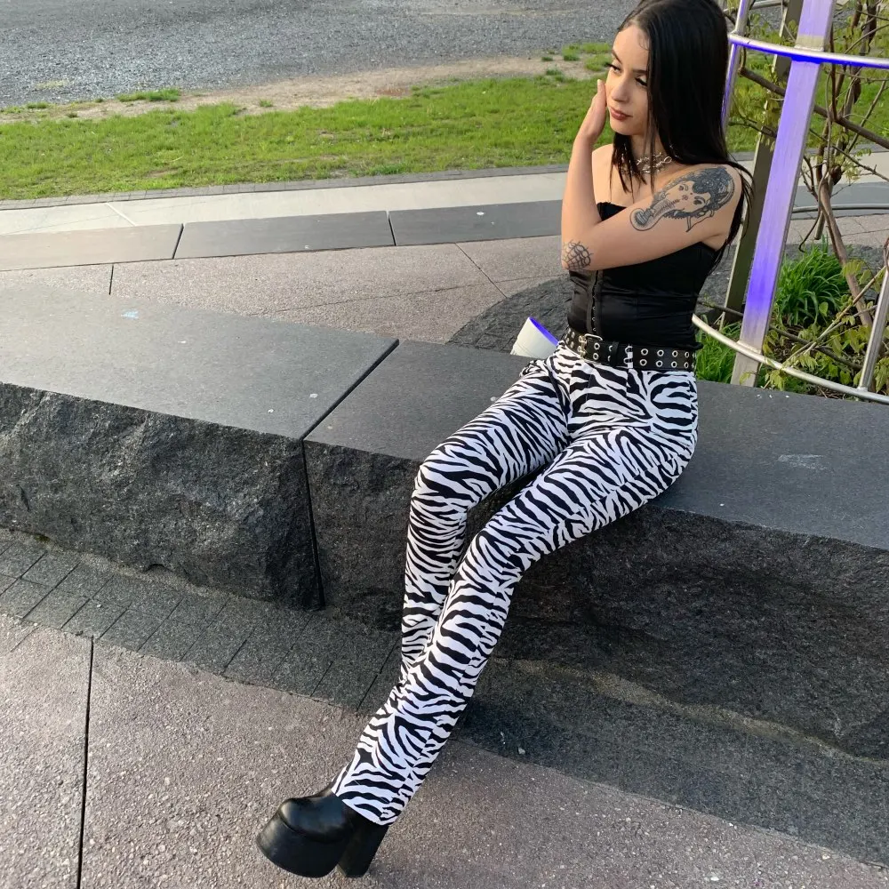 Related Product for [KEYWORD] and Wakeey Fashion Zebra Animal Print Wide Leg Pants Women Fall Winter Casual Trousers Sexy High Waist Bell Bottom PantsGothic Casual Pants Women Pants Crescent Hanging Suede Comfortable Trousers Punk Female Dark Goth Pants Girl Black Pants Dark