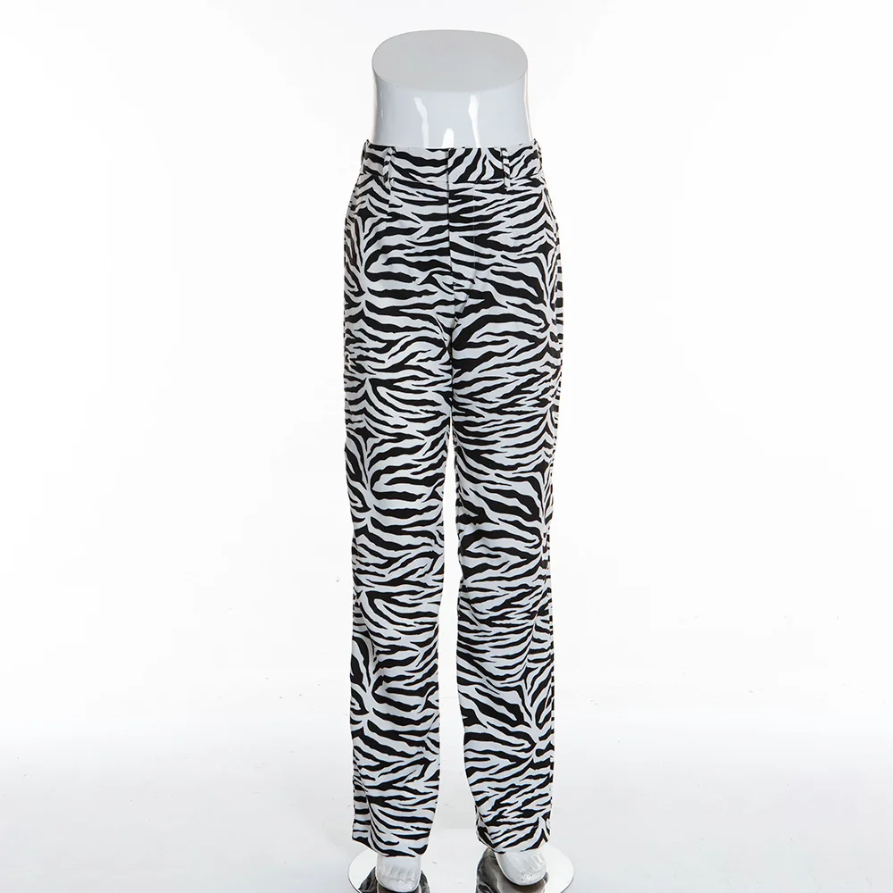 Special Price of Wakeey Fashion Zebra Animal Print Wide Leg Pants Women Fall Winter Casual Trousers Sexy High Waist Bell Bottom Pants
