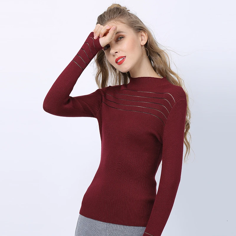 Best Autumn Winter Elastic Women Sweater Korean Style Half High Collar Ladies Solid Pullovers Female Knitted Bottoming Jumper Kazak Free Shipping
