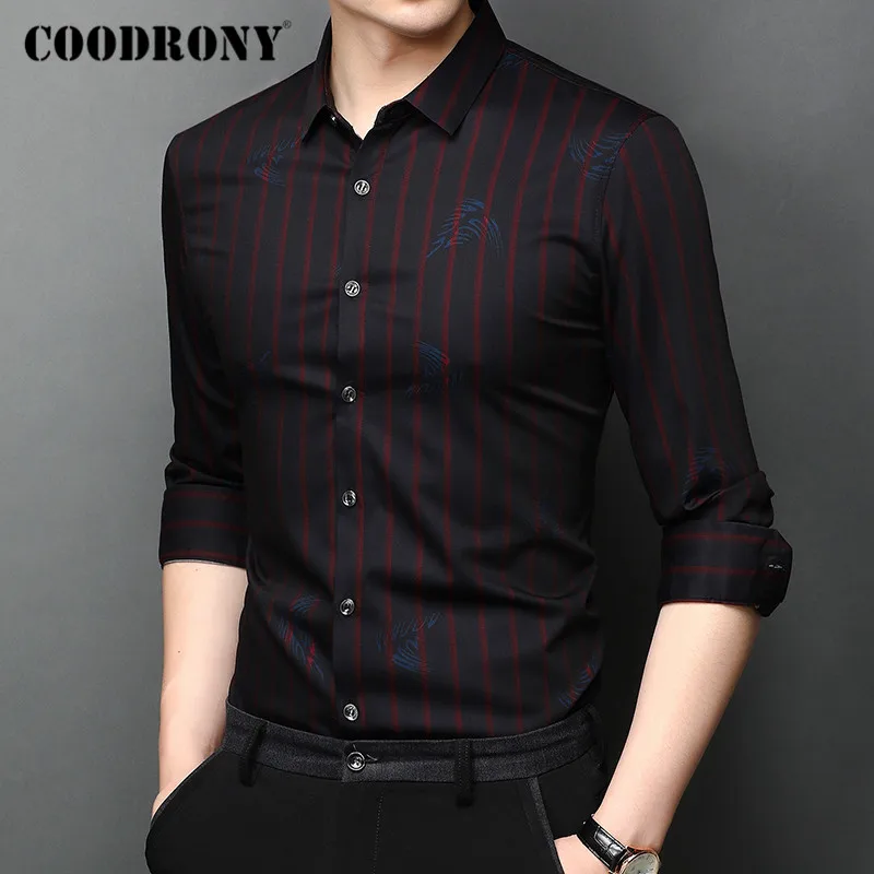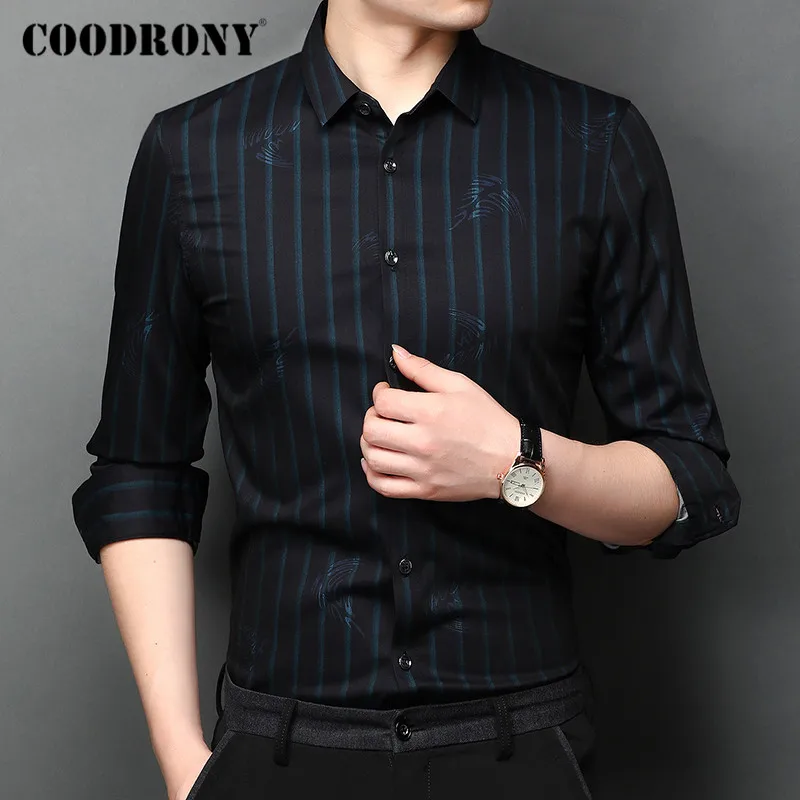 Good Chance of COODRONY Brand Long Sleeve Shirt Men Clothes Spring Autumn Fashion Striped Pattern Shirts Business Casual Camisa Masculina C6010