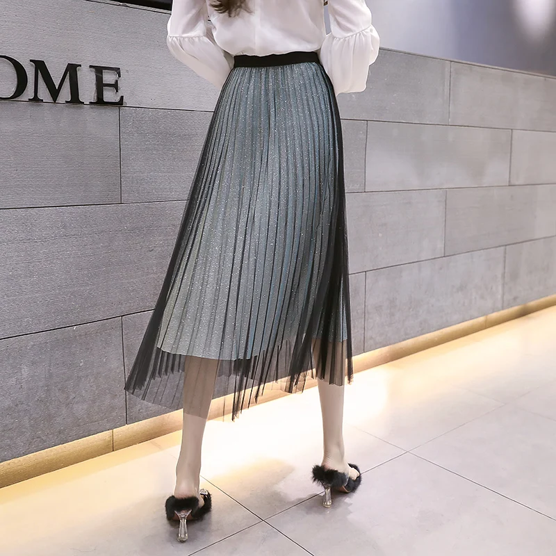 Buy Korean Fashion Pleated Skirts Elegant Woman Mesh Skirt Woman High Waist Midi Skirts Faldas Mujer Moda Woman Sequin Long Skirt OL up to 2098-12-31, and You will Save US $16.92 or 50%, Becuase You Just Pay for 16.92 not Full Price for 33.84