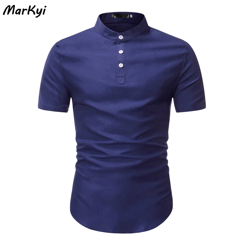 Offer Description of MarKyi 2020 summer mandarin collar shirt for men solid short sleeve mens casual dress shirt slim fit