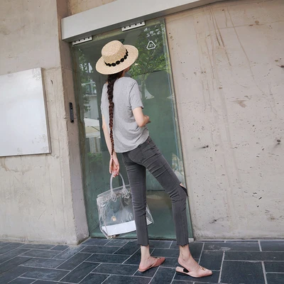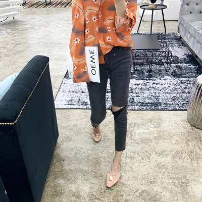 Related Product for [KEYWORD] and Paris smoke grey high waist single knee knife cut hole jeans womanSpring / Summer 2020 New Jeans Women's High Waist Stretch Hip Slim Fit Skinny Skinny Feet Nine Points Pencil Pants