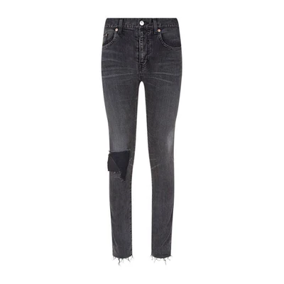 Best Offer for Paris smoke grey high waist single knee knife cut hole jeans woman
