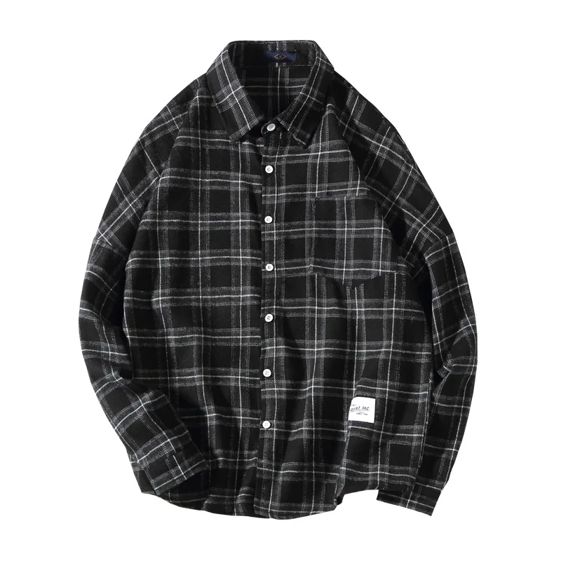 Addition Information of SEGGNICE Spring Japanese Retro Loose Long-sleeved Lapel Shirt Labeling Plaid Shirt Male F261