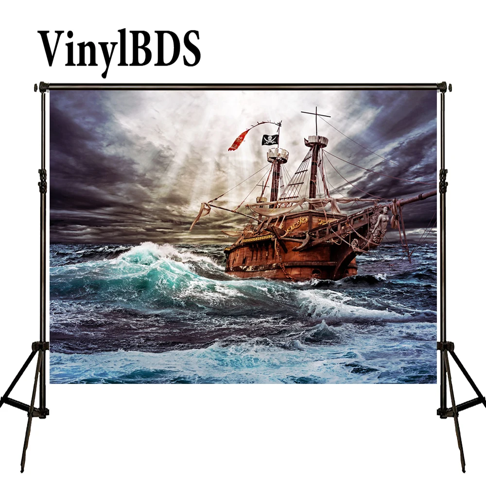 Best VinylBDS 5X7ft Pirates Of The Caribbean Background Shabby Sailing Boat Backdrop Children'S Marine Background For Photo Studio Free Shipping