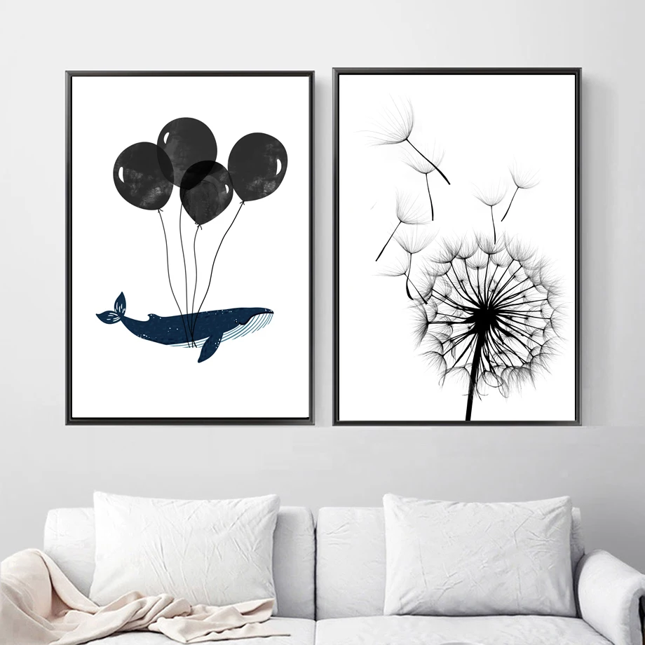 .Gallery of Black Balloon Dandelion Whale Numbers Wall Art Canvas Painting Nordic Posters And Prints Wall Pictures Baby Kids Room Home Decor