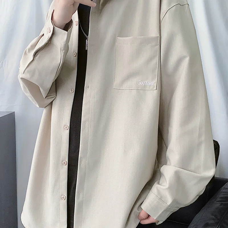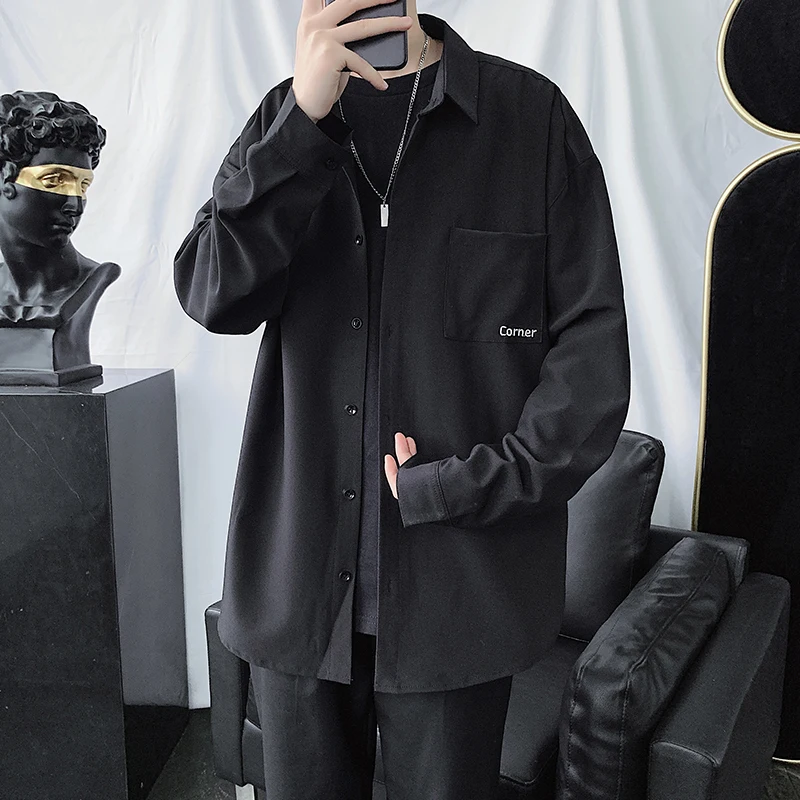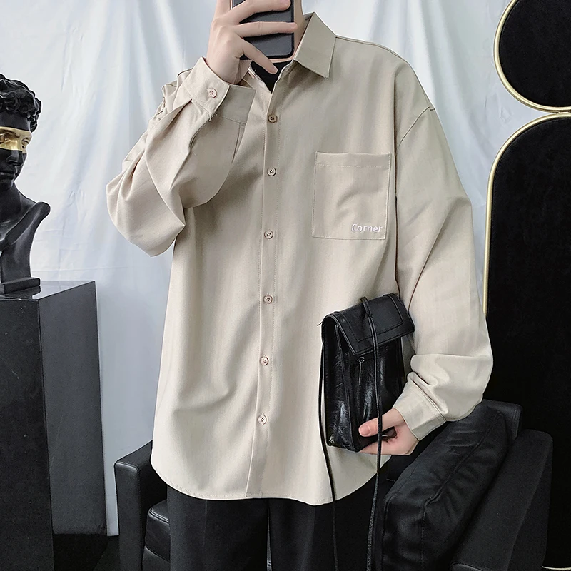 If You want to buy for Shirts, then Dress Shirt Men's Fashion Society Men Shirt Solid Color Business Casual Shirt Streetwear Wild Loose Long-sleeved Shirts Mens may be make you like