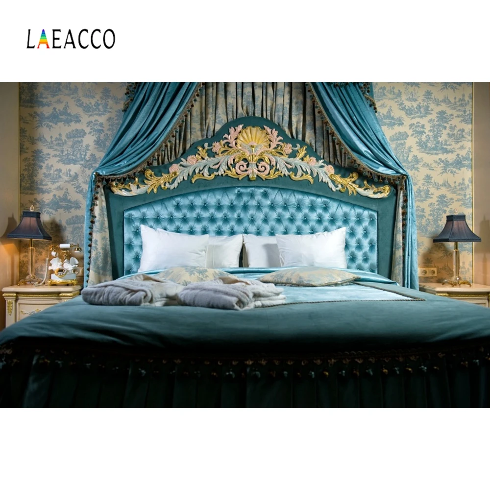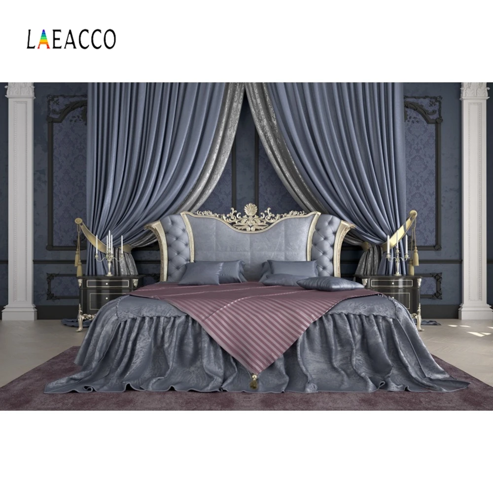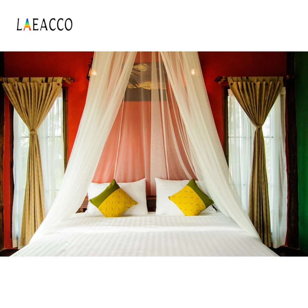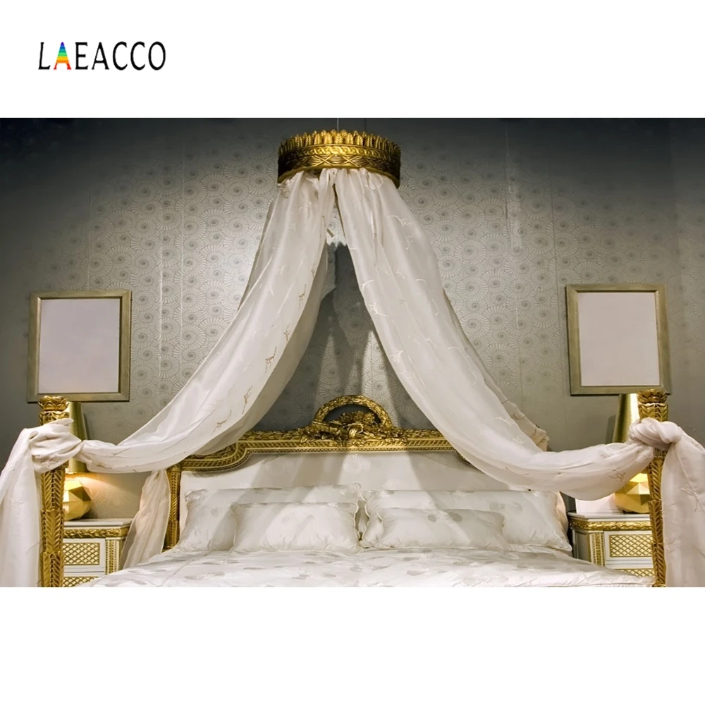 .Images of Laeacco Boudoir Interior Luxurious Bed Curtain Pillow Photography Backgrounds Customized Photographic Backdrops For Photo Studio