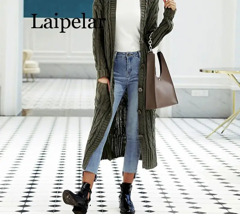 Offer Description for Laipelar Long sleeve warm cardigan female Knitting long cardigan sweater women jumper White pocket pull knit sweater shirt