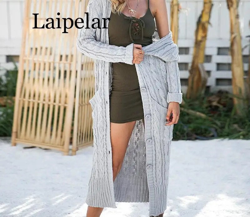 .Images for Laipelar Long sleeve warm cardigan female Knitting long cardigan sweater women jumper White pocket pull knit sweater shirt