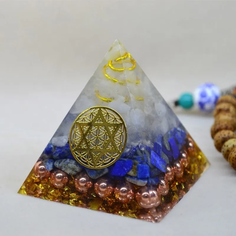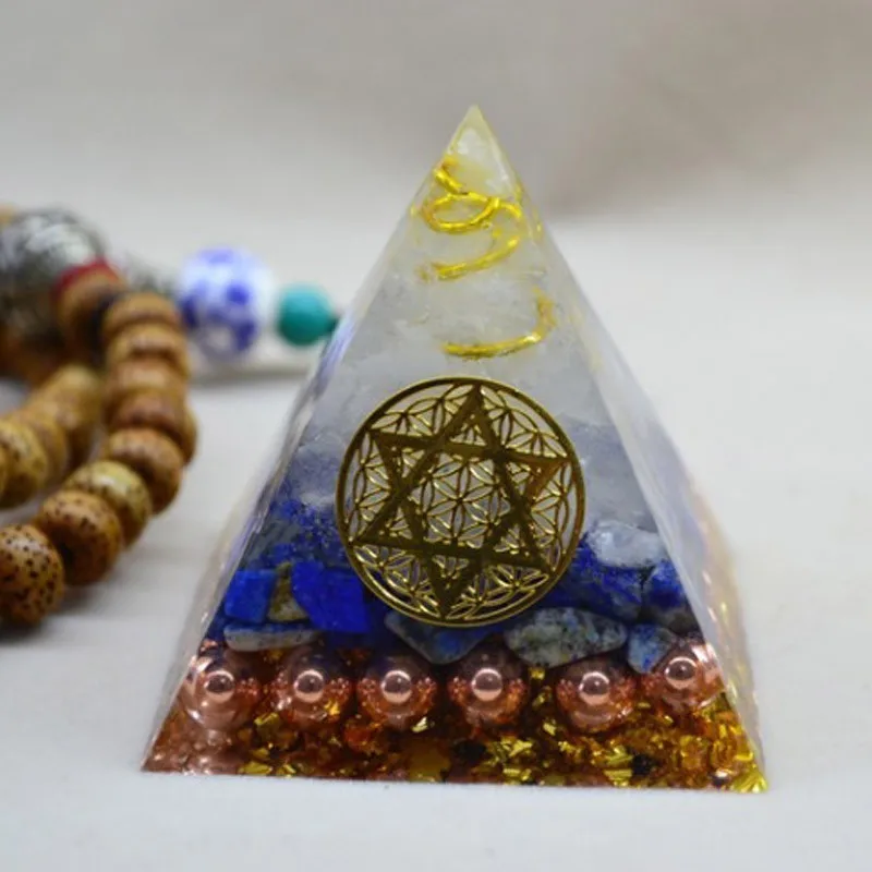 .Images of Natural Chakra Crystal Orgonite Pyramid Reiki Feng Shui Decoration Crystal Rune Orgone Accumulator Home Office Decoration