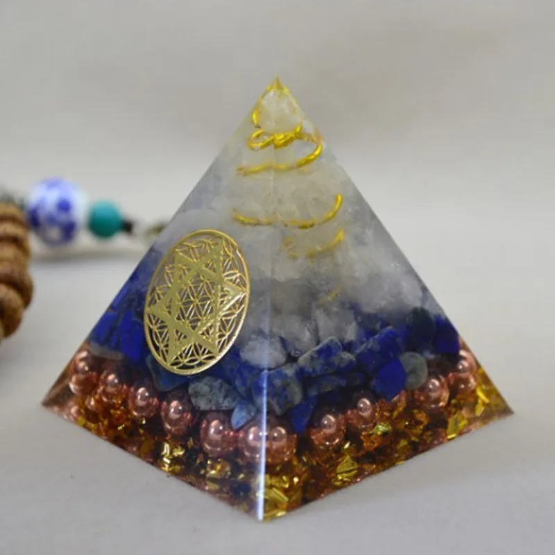 Natural Chakra Crystal Orgonite Pyramid Reiki Feng Shui Decoration Crystal Rune Orgone Accumulator Home Office Decoration