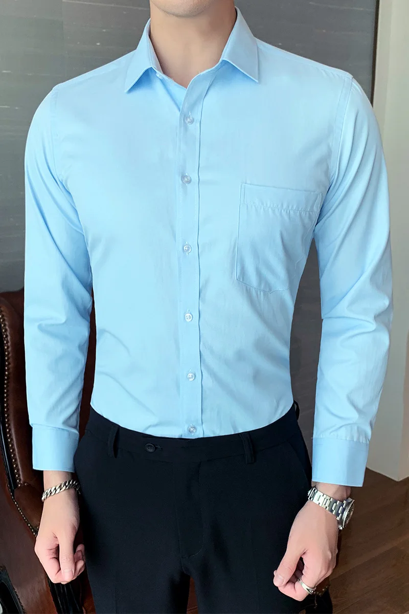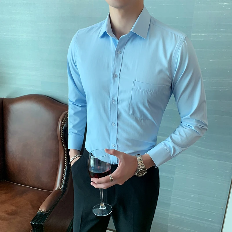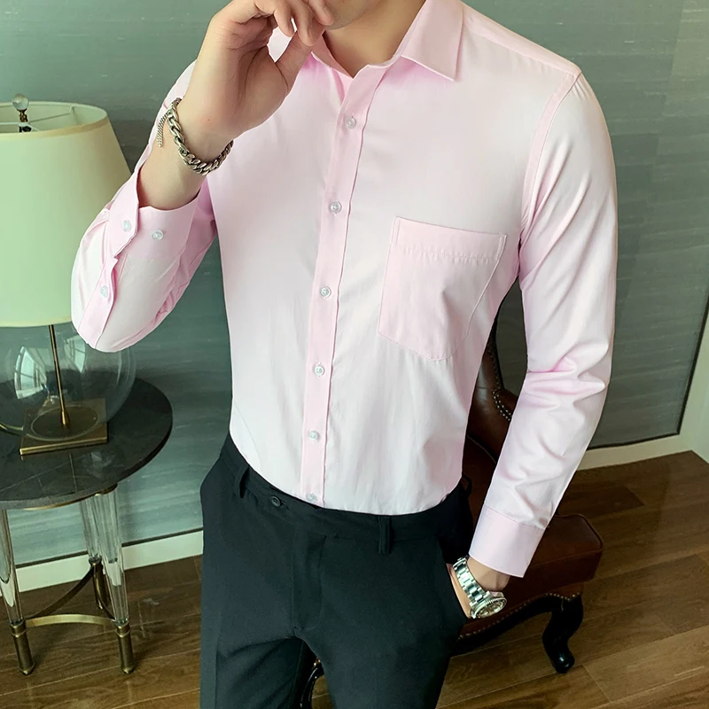 .Pictures of New Men's Shirts Plus Size 6XL Wedding Party Dress Long Sleeve Shirt Solid Business Formal White Man ShirtLuxury